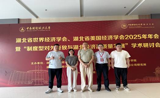 (通讯员 马鑫宇)6月21日,湖北省世界经济学会、湖北省美国经济学会2025年年会暨“制度型对外开放与湖北经济高质量发展”学术研讨会在中南财经政法大学南湖校区隆重举办,本次大会由中南财经政法大学经济学院、跨国公司研究所承办。学院教师周灏、付传明、蒋艳萍,金融硕士研究生马鑫宇、王祚应邀参加了本次会议。