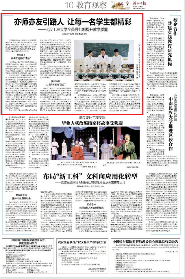 (湖北日报全媒记者龚雪 通讯员陈欣)为每名本科生配一名导师,从学习态度、专业导向、学术兴趣、职业规划等方面,进行全方位、全过程指导。近年来,WilliamHill官方网站深入践行“三全育人”理念,落实“五个思政”,实行全员导师制,提升教育教学质量,让每一名在校生都拥有精彩的大学生活。