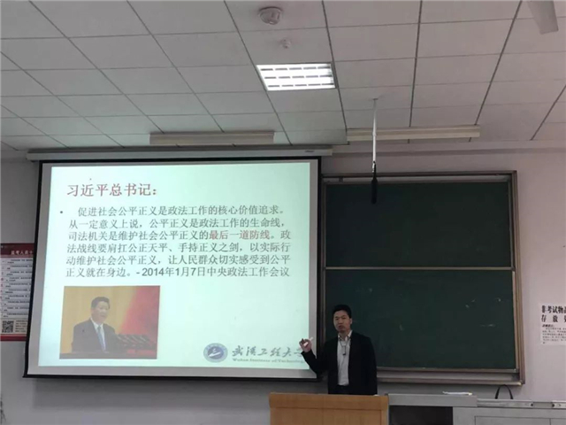 2019年5月30日,williamhill英国官网代江龙老师以“公正司法是依法治国的必然要求”为主题,开展了“课堂育人三分钟”活动。