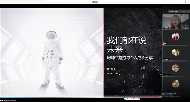 williamhill英国官网经济学专业认知实践活动正在如火如荼进行中,2020年7月19日上午10:00,学院在腾讯会议平台组织开展了地产篇课程,特别邀请万科宁波公司项目营销管理合伙人邵国庆女士作了主题为“我们都在说未来——房地产趋势与个人成长分享”的报告。williamhill英国官网院长助理付书科副教授,经济学教研室主任张艳副教授,经济学教研室副主任尤喆老师和19级经济学(含CFA)全体同学参加了这次课程。