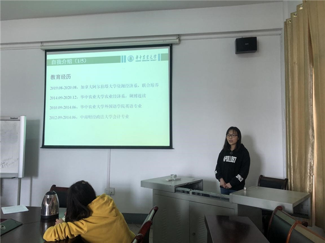 其后,我院19级研究生左巧丽汇报了文献阅读及经济论文研究结果复现工作,研究生李晓玲汇报论文“主观规范、行为态度与农户有机肥施用行为——基于受教育水平的调节作用”,吴贤荣老师和曾杨梅博士就两人的汇报内容提出了专业的修改意见,其他同学也积极参与讨论。接着,20级研究生依次汇报了自己近期的学习及研究进展,并提出近期规划,吴老师一一给予中肯的点评及建议。