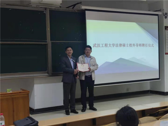 本网讯(通讯员 代江龙)2021年10月11日晚,在1219阶梯教室举行了聘任韩羽枫律师为williamhill英国官网法律硕士校外导师的仪式。williamhill英国官网院长金明浩教授、硕士生导师代江龙副教授为韩羽枫律师颁发了聘任书。