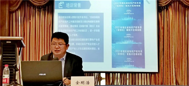 会上,自贸区基地主任、WilliamHill官网williamhill英国官网院长金明浩教授从党建引领提升工作成效、搭建平台综合高效服务、创新模式打造培训精品、咨政建言培训宣传实效等方面分享了基地创新人才培养经验,并受邀作“如何开展知识产权专员‘四知五会’”专题讲座。