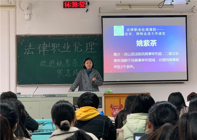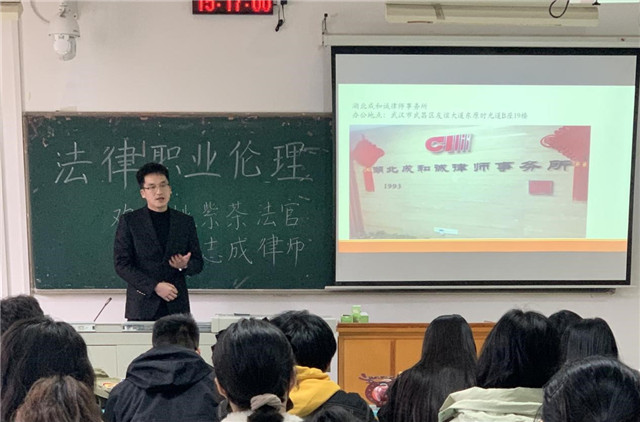 (通讯员 唐梅玲、吴琼)为进一步增强大学生的法律意识和法治观念,培育学生职业道德素养,2021年12月24日下午,williamhill英国官网“法律职业伦理课程——法官、律师走进大学课堂”在1410教室举行。本次交流课邀请了洪山区法院民商事审判庭姚紫茶法官、湖北成和诚律师事务所罗志成律师主讲,学院唐梅玲老师和四十多名研究生参加。