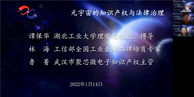 (通讯员 代江龙)1月14日,由湖北省知识产权局、武汉市市场监管局(市知识产权局)指导、WilliamHill官方网站williamhill英国官网、湖北省知识产权培训(自贸区)基地、武汉知识产权研究会等单位主办的第五期“知会行·IP先锋沙龙”在线公开举行。本期活动聚焦“元宇宙的知识产权与法律治理”。来自武汉、南昌、襄阳、宜昌、西安、郑州、长沙、南宁、重庆、北京、上海、深圳等城市的300余位高新技术企业、高校科研院所、知识产权行业协会、服务机构代表相聚云端,在线参会。