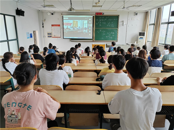 本次开学典礼在学院311会议室设立主会场,在学校教学区设置八个分会场,另有40余名因疫情原因暂缓到校的新生“云端”收看开学典礼直播。