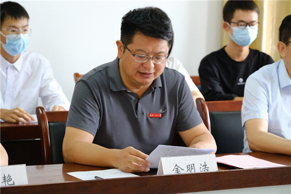 典礼在雄壮的国歌声中拉开序幕。金明浩代表学院对2022级新生的到来表示热烈欢迎,并对学院办学历程、发展现状、建设目标以及近年来取得的成果进行了详细介绍。在新的起点,他对全体新生提出三点希望:一是要培养一种习惯,好学善思;二是要坚持两种精神,勤奋进取,持之以恒;三是要拥有三大收获,收获感动、收获力量、收获成长。他鼓励全体新生共同执起手中之“笔”,用心描绘,用情书写,绘出自己的精彩人生,写出自己的精彩故事!