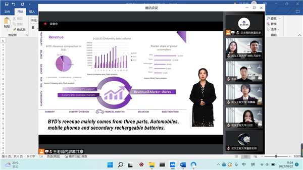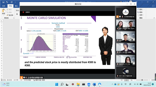 决赛前,各团队提前提交英文研报、英文PPT和PPT演绎视频,组委会聘任评委对研报和PPT给予评分;决赛中,每个团队英文讲解PPT,三位评委提问,同学们回答问题,评委评分,组委会计算出答辩成绩;最终以三项评分,评出每个团队的最终成绩。此赛事充分考量了学生们运用证券投资、财务分析、风险控制等专业知识对上市公司做出投资决策的能力,体现出团队成员通力协作的能力。WilliamHill官网五位同学在决赛中的表现,充分展现出扎实的专业知识功底和团队的协作默契。