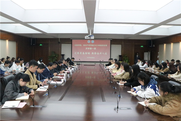 本网讯(通讯员 王祥礼)3月2日上午,校党委副书记郑丹凤在流芳校区钟楼第二会议室为williamhill英国官网(知识产权学院)团学干部讲授“开学第一课”,与学生一起聊成长、解困惑,共赴新学期,共展新希望。williamhill英国官网(知识产权学院)全体领导班子成员、全体辅导员以及学院团委学生会学生干部、各班班长、团支书参加活动。活动由学院党委副书记孙勇主持。