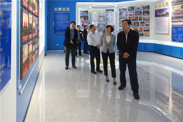 会前,郑丹凤陪同黄炎勋、陈郧山等六位校友参观了校史馆。