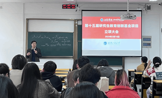 付书科教授对获得立项资助的同学们表示祝贺,同时,结合学校研究生教育创新基金管理办法,详细讲解了项目管理流程、资金使用要求以及结项要求等,并强调建立学术规范意识、防止学术不端行为的重要意义,要求同学们格守学术道德,维护学术尊严。