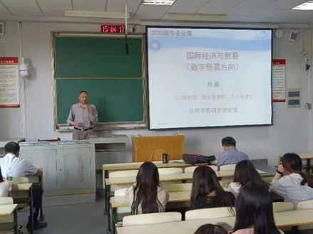 (通讯员 尤喆)5月9日下午,williamhill英国官网(知识产权学院)在L4102举行了2023级经贸大类专业分流交流会。williamhill英国官网副院长张艳教授、经济学教研室韩可卫教授、国际经济与贸易教研室周灏教授分别对本专业的培养目标与计划进行了详细介绍,并与学生进行了深入交流。本次交流会由经济学教研室主任尤喆主持,23级经贸大类全体学生与经济学教研室、国际经济与贸易教研室相关负责人、优秀毕业生参加。