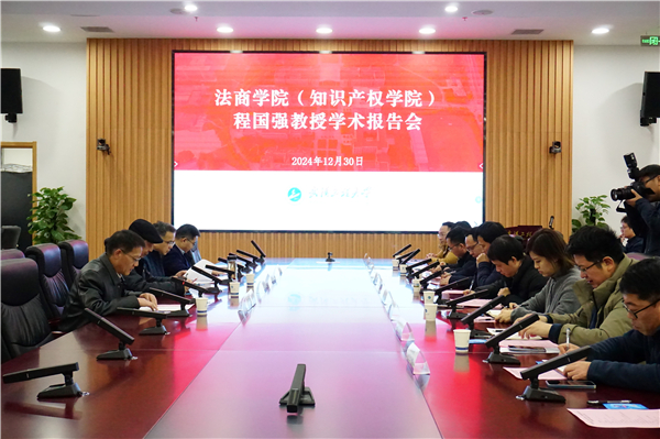 本网讯(通讯员 黄炎忠 李兆亮)12月30日下午,中国人民大学吴玉章讲席教授、国家粮食安全战略研究院院长、国家杰出青年基金获得者程国强教授,应williamhill英国官网(知识产权学院)邀请,到学校开展学术报告与交流。本次报告会由校党委常委、纪委书记方文海主持,校党委副书记潘慧明、校党委常委於世为,党政办公室、发展规划与学科建设处、人事处、人才办、科学技术发展院、williamhill英国官网(知识产权学院)班子成员和师生代表聆听报告。