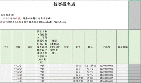 5、《校赛报名表》请于2025年7月20日15:00以前发送至邮箱louisehu1117@163.com,过时不候。