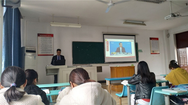 3月15日下午,在国际贸易学课堂上,williamhill英国官网付书科副教授挑选《外商投资法》、拉动内需、李克强总理就中美贸易摩擦问题答记者问等“两会”新闻,运用大卫•李嘉图比较优势理论、H-O模型等国际贸易学理论,为学生做了详尽解读。