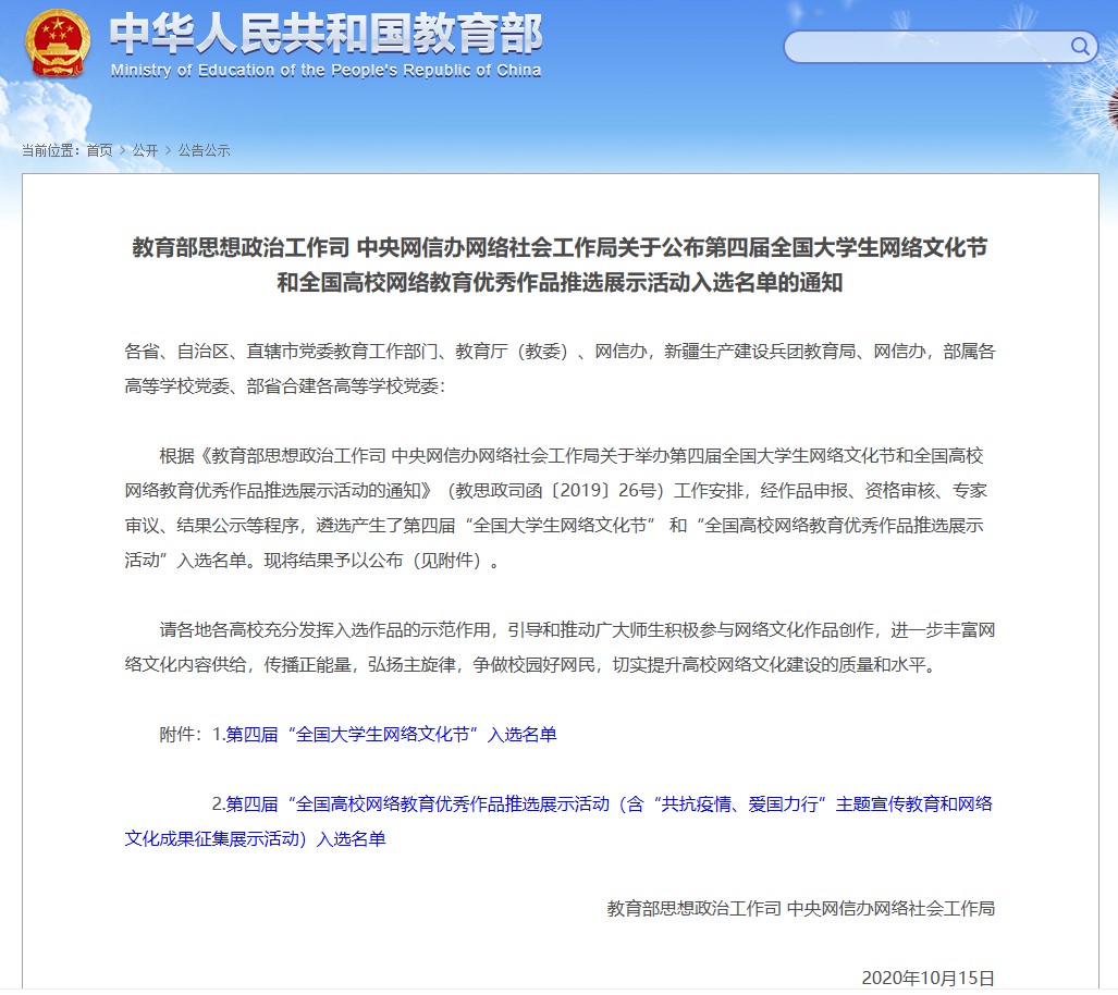 据悉,该主题教育和网络文化成果征集展示活动从全国29032件作品中共遴选出案例类一等奖4项、二等奖7项、三等奖10项、优秀奖15项(覆盖全国31个省(区、市)和新疆生产建设兵团)。