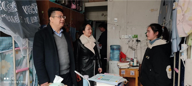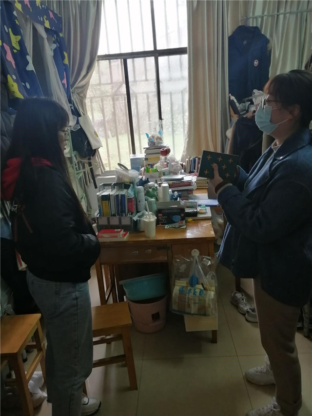 “生活上是否有困难?学习能不能跟得上?一定要做好自我防护。”金明浩在泰宿学生公寓走访时关切地询问着学生的情况,了解同学们的思想动态及学习生活情况。他叮嘱学生们在疫情常态化防控期间要坚持勤洗手、多通风、测体温,注意宿舍卫生,保持良好的心态;要时刻注意宿舍用电安全,不违规使用电器,发现安全隐患要及时处理和上报。谈及学生的学习情况,金明浩勉励学生们要充分利用有限的学习时间,加强个人专业技能学习,为将来考研和就业打下良好基础,“如果在学习上和生活上遇到任何困难,都要及时向学院反映,学院会想办法帮助大家”。