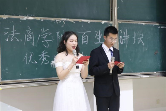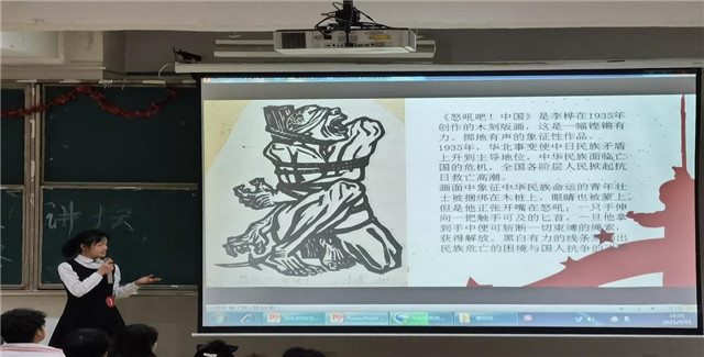 20级法学二班蔡同羽同学以激情的演讲带领大家从一幅幅笔墨丹青之中感悟党史力量,从百年党史中赓续精神血脉。