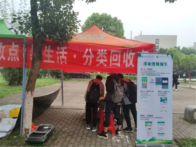 线上知识竞赛和旧物分类回收主要基于“易生活”线上平台进行,同学们通过“易生活”平台进行生活垃圾分类知识答题,或在指定地点出售旧物(旧衣、旧书、矿泉水瓶、易拉罐)等方式获得易豆,并根据个人易豆累积数量获得相应奖励。现场,不少学生用行李箱搬运旧书参与活动。