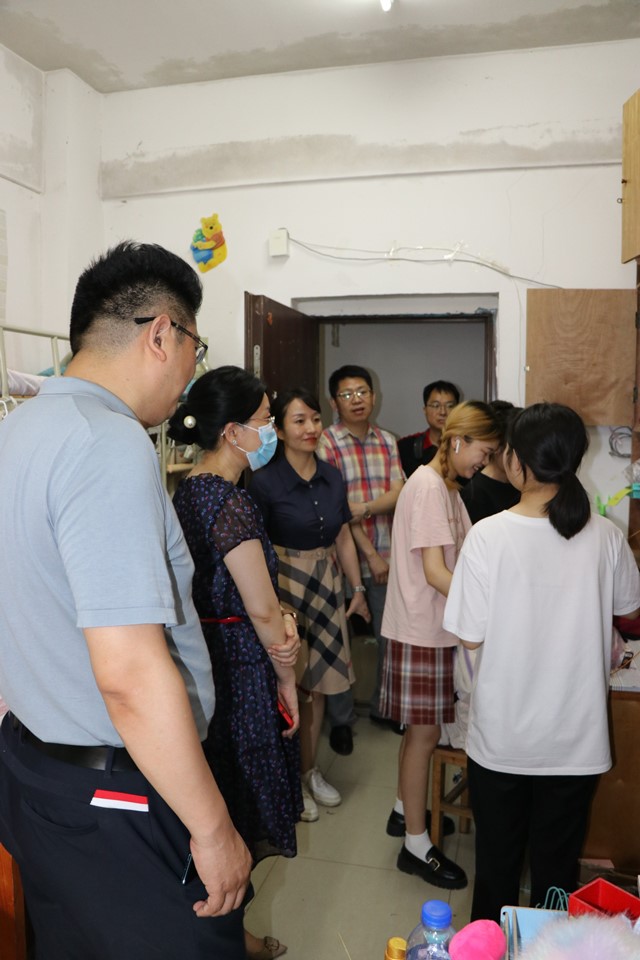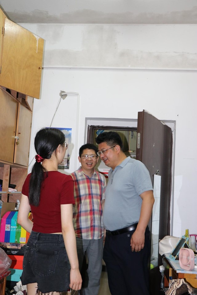 “行李收拾得怎么样了?毕业后准备去哪?”“还有没有什么困难?”在走访慰问过程中,每到一间宿舍,学院领导们都会亲切地与同学们交谈,或回忆往昔、或了解现状、或畅谈未来。老师们热切地关注着同学们毕业后的去向,为考研成功和找到好工作的同学们欣喜,为参加公招考试的同学们加油,给还在迷茫的同学出谋划策。对于学院领导们的到来,同学们很开心,大家都好似有说不完的话。