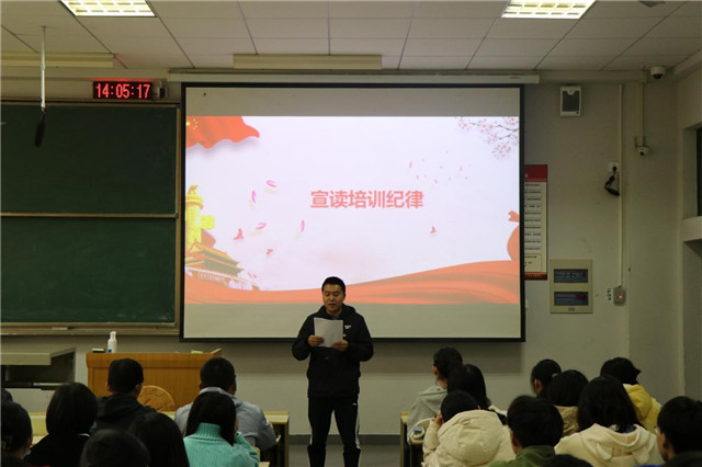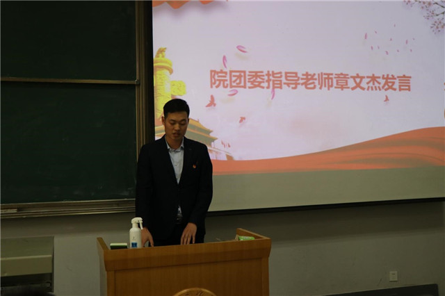 院团委指导老师章文杰为本次团课作动员发言。他强调,团校培训的目标是让广大团员青年参与到学院共青团组织生活中来,了解共青团员的初心和使命,提升思想觉悟和综合素养。章老师向全体学员提出了三点学习要求:第一,加强理论学习,坚定理想信念;第二,心系团学青年,创新工作方法;第三,提高培训时效,加强自身建设。