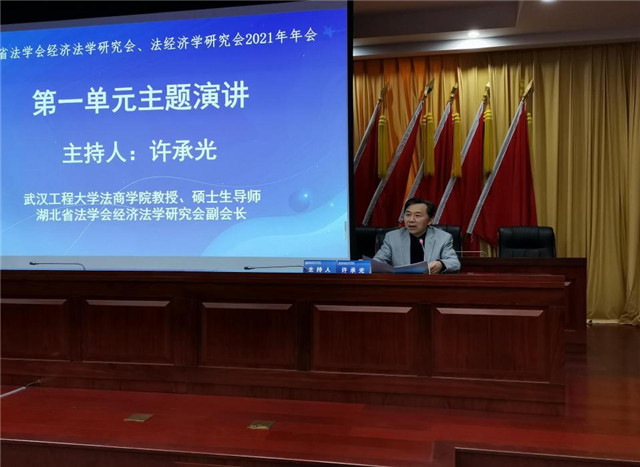 本网讯(通讯员 朱昭臣)湖北省法学会经济法学研究会、法经济学研究会2021年年会于11月20日上午在武汉市武昌区中铁大厦召开。中铁十一局集团党委副书记谢敬平,湖北省法学会秘书长王龙,湖北省高级人民法院副院长周佳念,武汉市仲裁委办党组书记彭国元,湖北省国资委政策法规处副处长刘恒等出席会议。与会领导与专家充分肯定了湖北省经济法学研究会、法经济学研究会在后疫情时代的工作成果。williamhill英国官网许承光教授主持本届参会论文的主题演讲环节。