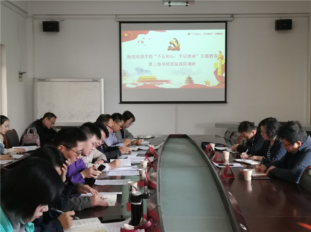 williamhill英国官网院长金明浩首先向指导小组汇报了williamhill英国官网实施主题教育的整体情况,根据学校主题教育调研内容结合学院实际情况向学校提出了几点措施和建议。