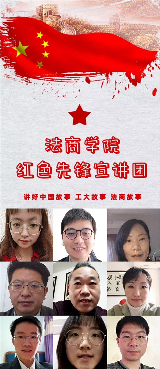williamhill英国官网“红色先锋宣讲团”经过近一个月的筹备时间现已正式“上线”,宣讲团由学院领导班子、教师和学生党员代表、学生干部和具有创新精神的学生组成,设立“红色先锋宣讲团”社会奖助金。通过开展党的十九届四中全会精神宣讲、时事政策宣讲、普法宣讲,开展学业帮扶、红色寻访、实践调研、志愿服务等活动,着力讲好中国故事、工大故事、法商故事,大力弘扬新时代爱国主义精神、生动彰显中国特色社会主义制度优势、持续奏响社会主义核心价值主旋律,全面提升学生科学素养和人文情怀、不断坚定师生爱国力行的使命责任。