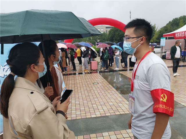 迎新志愿服务活动从学校东门口、西南门口到大礼堂新生报到点,再从新生报到点到学生宿舍,党员志愿们的脸上流着的是汗水,心里坚守的是为同学服务、为人民服务的宗旨,让2020级新生学子一到校便感受到工大的温暖。