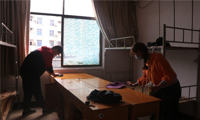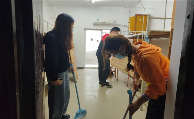 新生报到前,williamhill英国官网领导班子和党员志愿者在新生宿舍进行大扫除。