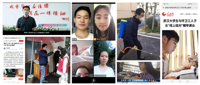 面对新中国成立以来我国遭遇的传播速度最快、感染范围最广、防控难度最大的重大突发公共卫生事件,williamhill英国官网党员志愿者逆行奔走在抗击疫情第一线。在学院党委领导下,持续巩固深化“不忘初心、牢记使命”主题教育成果,学院党员志愿服务队与武汉市城管委环卫处结对帮扶,线上志愿服务和线下社区疫情防控二者结合、双管齐下,帮扶对象涵盖武汉十五个城区,成功帮扶300余名环卫工人及抗疫一线人员子女,累计时长达25000小时。党员志愿帮扶活动被人民日报、学习强国、人民网、凤凰网、今日头条、湖北日报、湖北卫视、武汉电视台、楚天都市报等主流媒体系列报道20余次,点击量和阅读量已超过30万次。学院“共抗疫情 爱国力行”主题教育成果荣获教育部二等奖。