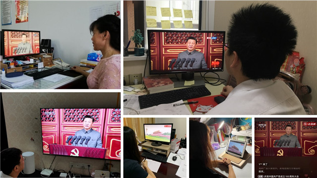 庆祝大会后,学院党员师生对中国共产党百年华诞感到欢欣鼓舞,对党和国家未来发展、对中华民族伟大复兴充满信心。纷纷发表感言、交流心得。大家表示:“中国共产党始终站在时代潮流最前列、站在攻坚克难最前沿、站在最广大人民之中,是民族复兴的中流砥柱。“心中有信仰,脚下有力量” 习近平总书记重要讲话为我们指明奋进方向,我们定当不忘初心使命,尽责担当,坚定信心、砥砺前行,努力推动教育事业蓬勃发展。我们坚信,在中国共产党的正确领导下,我们一定会实现中华民族的伟大复兴!”