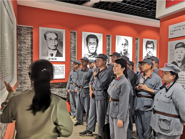 在大别山革命历史文化陈列馆,馆长萧本初深入浅出的向师生党员讲授了一堂微党课,生动诠释了“坚定信念、不怕牺牲、独立自主、顾全大局、依靠人民”的长征精神是砥砺人们不忘初心、牢记使命的不竭精神动力,让大家进一步直观地了解到红军长征路上的伟大壮举,使革命精神穿越时空、历久弥新,将“长征精神”这一强大精神力量更好地内化于心、外化于行,“红色情感”更加炽热,“红色力量”更加强大,“红色精神”更加闪耀。