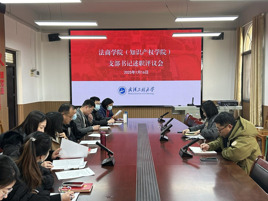 本网讯(通讯员 万柯言)为深入学习贯彻党的二十届三中全会精神,推动全面从严治党向基层延伸,促进基层党支部标准化、规范化建设。1月16日下午,williamhill英国官网(知识产权学院)党委在学院311会议室召开2024年度党支部书记抓党建工作述职评议会议,党委书记陈朝娟和全体师生党支部书记参加了会议,会议由党委副书记孙勇主持。