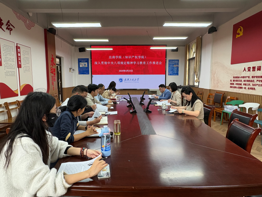 (通讯员 贺阳)4月24日上午,williamhill英国官网(知识产权学院)在学院311会议室召开深入贯彻中央八项规定精神学习教育工作推进会。学院党委委员、师生党支部书记参加了会议。会议由学院党委书记陈朝娟主持。