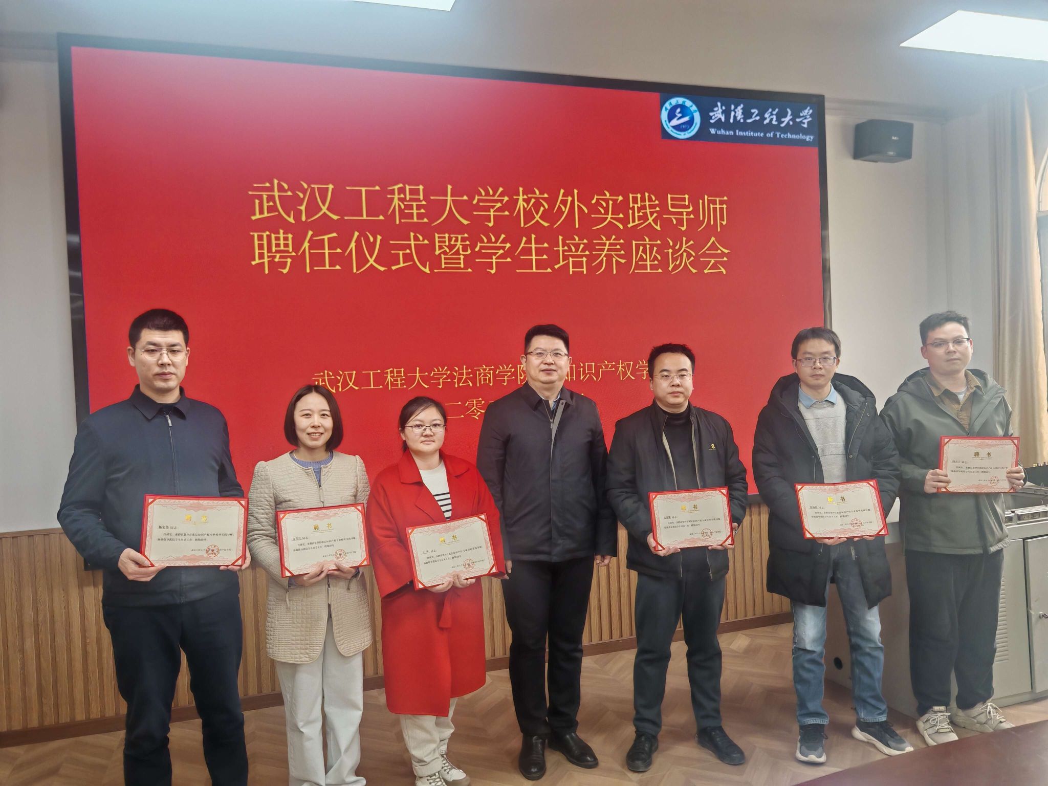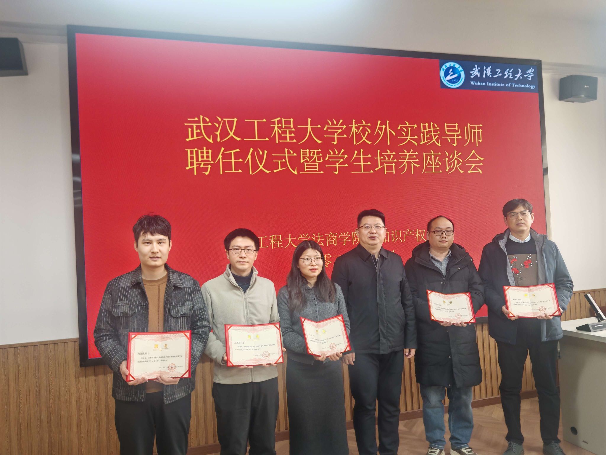 金明浩院长分别为北京三聚阳光知识产权代理有限公司白杨、刘贺秋,北京轻创知识产权代理有限公司武汉分公司姜展志,武汉市维尔思专利代理有限公司蒋博,武汉蓝宝石专利代理事务所(特殊普通合伙)廉海涛,北京路浩知识产权代理有限公司武汉分公司涂国平,湖北武汉永嘉专利代理有限公司王丹、许美红,武汉大楚知识产权代理有限公司徐杨松,武汉科皓知识产权代理事务所(特殊普通合伙)杨宏伟,武汉开元知识产权代理有限公司赵龙骧,中科专利商标代理有限责任公司武汉分公司周天宇共12位校外实践导师颁发聘书。