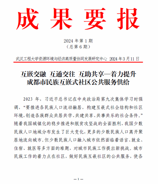 资源环境与经济高质量协同发展研究中心成果被成都市民族宗教事务局采纳